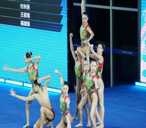 花样游泳作为体能、难度和艺术融合的项目,被称为“水中芭蕾”。本次花样游泳项目分为集体、女子双人两个小项。其中,集体项目要进行集体技术自选、集体自由自选、集体技巧自选三项较量,三项成绩之和总分最高的队伍将获得金牌,最后一项集体技巧自选将于11月14日19:00进行;女子双人项目则进行女子双人技术自选、女子双人自由自选两项较量,同样为两项成绩之和总分更高的队伍获胜,金牌花落谁家,将在11月15日女子双人自由自选比赛后揭晓。