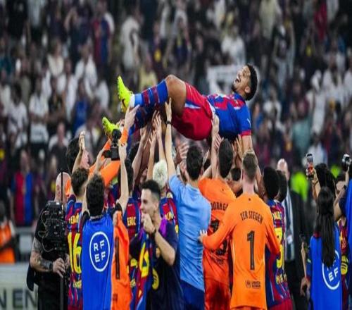 吉达的西班牙超级杯决赛赛场见证了阿劳霍职业生涯中或许最为特别的一天。此前因心理健康问题缺阵许久的乌拉圭人宣告回归,而这次复出的剧本堪称完美:他不仅重新踏上赛场,更随球队捧起冠军奖杯,并且作为球队代表高高举起了这座冠军奖杯。