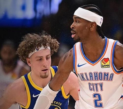 比赛上来,雷霆队借主场之势火力全开占据着场上的主动权,勇士队靠着滚烫的三分手感苦苦追分,雷霆队一度取得14分的巨大领先优势,勇士队在半场结束时落后13分。易边再战,雷霆队进攻断电,勇士队抓住机会多点开花一举追上比分。随后,两队陷入拉锯战,比分咬得很紧,比赛悬念一直拖到最后,SGA迎着追梦格林命中大心脏三分球杀死比赛。最终,勇士队以97-104不敌雷霆队。