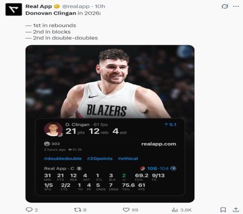 这场比赛后克林根最近的五场比赛三次拿到20+10,进入2026年后克林根篮板球第一、盖帽第二、两双第二,克林根的蜕变实在是太彻底了。